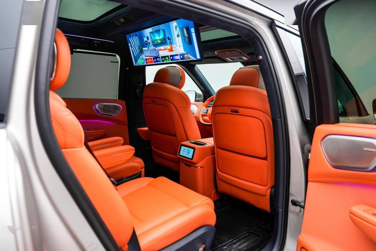 在空间设计和智能配置上,领克900同样展现出了其前瞻性的设计理念。基于SPA Evo架构,领克900拥有3160mm的轴距和纯平地板设计,车内空间宽敞舒适。三排座椅的腿部空间均达到了820mm,实现了六座空间的平等分配。二排电动旋转座椅可180度旋转,搭配大尺寸电动天地门,进一步拓展了车辆的使用场景。智能座舱方面,领克900同级首搭双8295芯片,实现了多屏联动,搭配哈曼卡顿音响系统,为用户带来了沉浸式的视听体验。